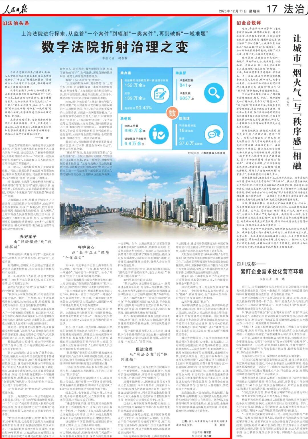 让诉讼经由可知、诉讼服务可感、诉讼放置可期,上海法院在利民便民、防守民气方面交出“数字答卷”。